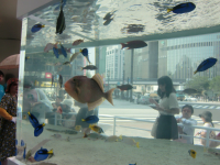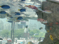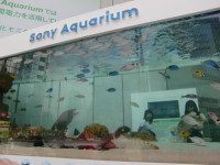 沖縄の美ら海の魚たちが、ソニービルの前の水槽で見ることが出来ます。