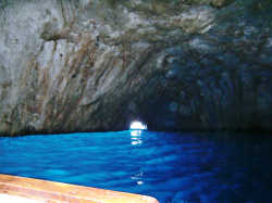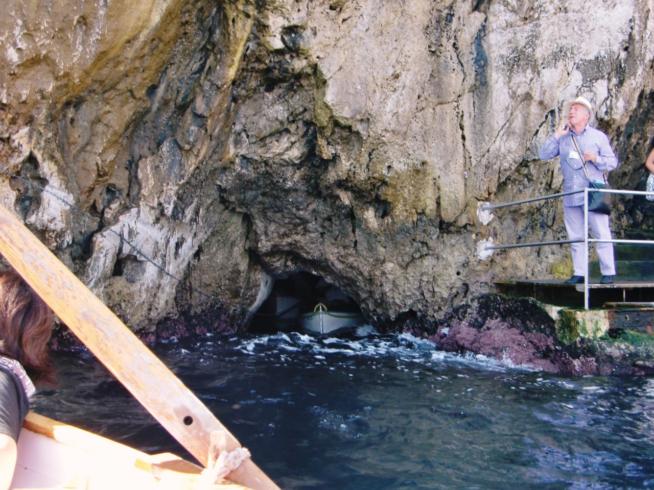 船頭がカンツオーネを歌い洞窟内を一周してくれます。昔ローマの皇帝が