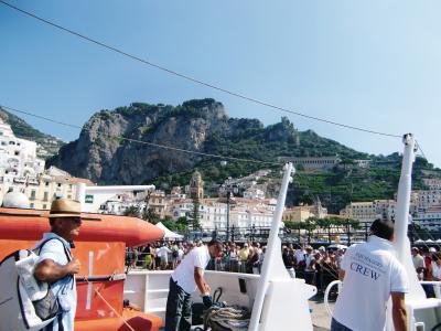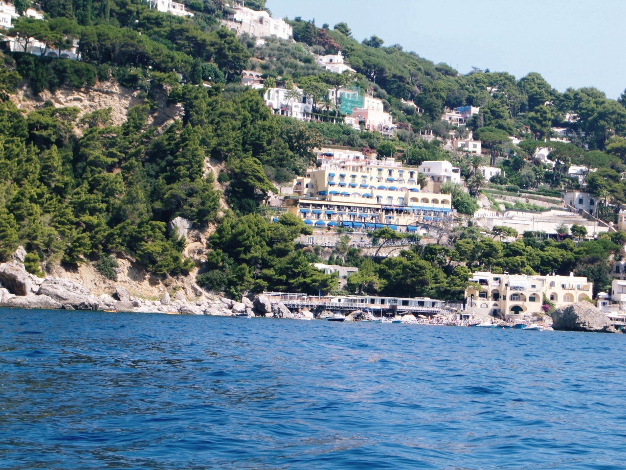 洞窟を出て、ふたたび船を乗り換えカプリ島の周遊が続きます。洞窟はほかにも