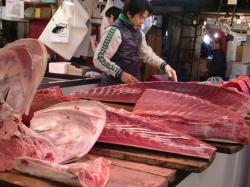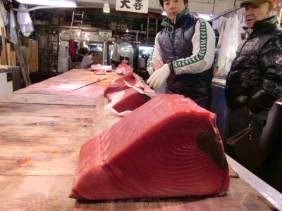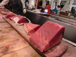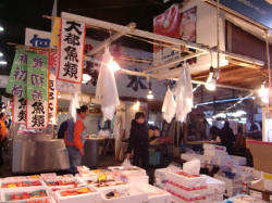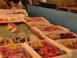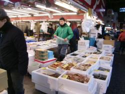 魚市場にはマグロを長い包丁でさばく様子、筋子や数の子、明太子、昆布にちりめんなどの塩干物も格安、牡蠣を産地別に売る店、高級魚のキンキばかりが並んだり大きな丸ものという1尾丸ごとの魚が並びます。本物の雲丹は絶品でした。