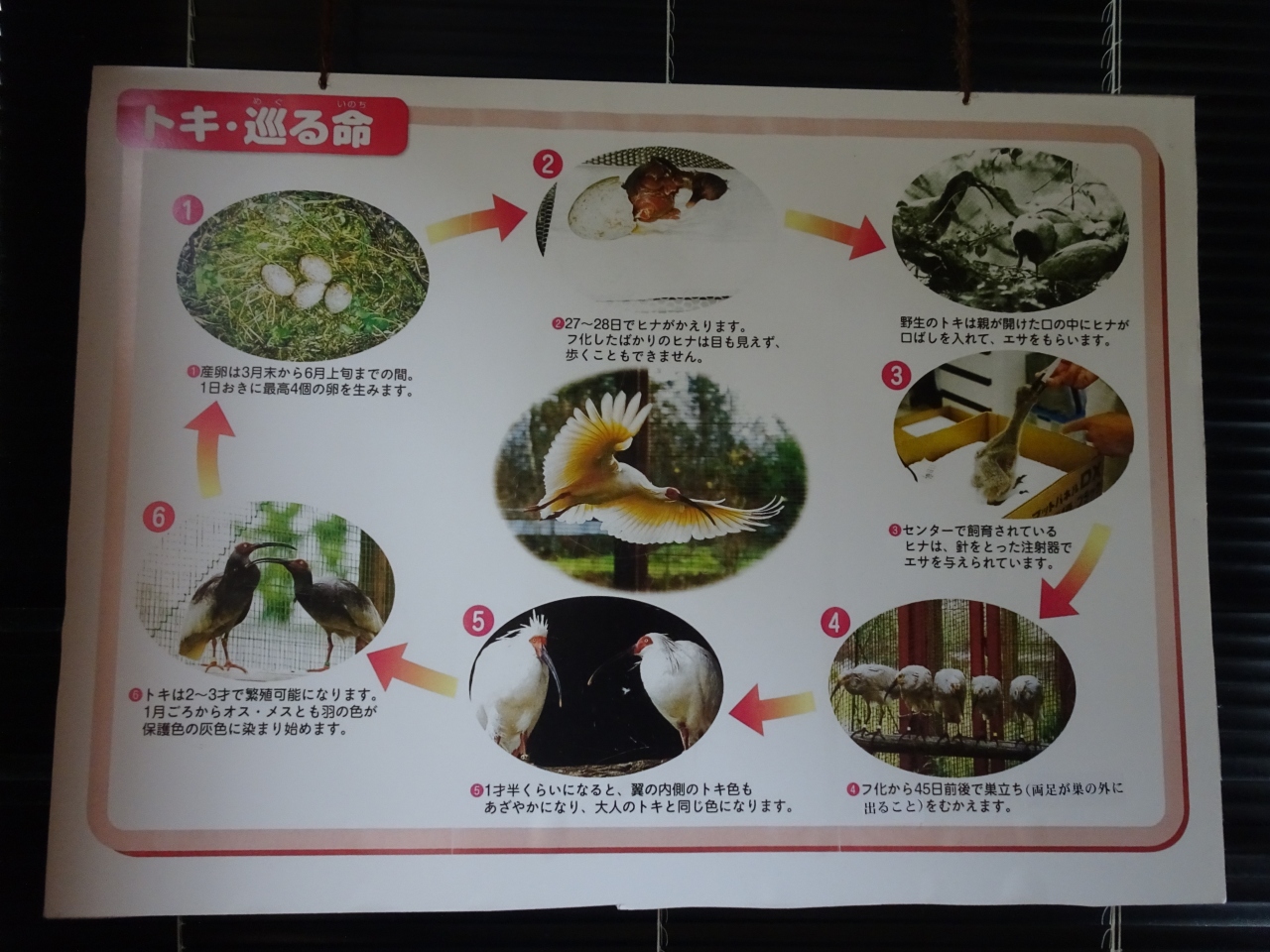 トキの森公園内にある施設で、1階から、そして2階から同じケージ内のトキを見ることができます。