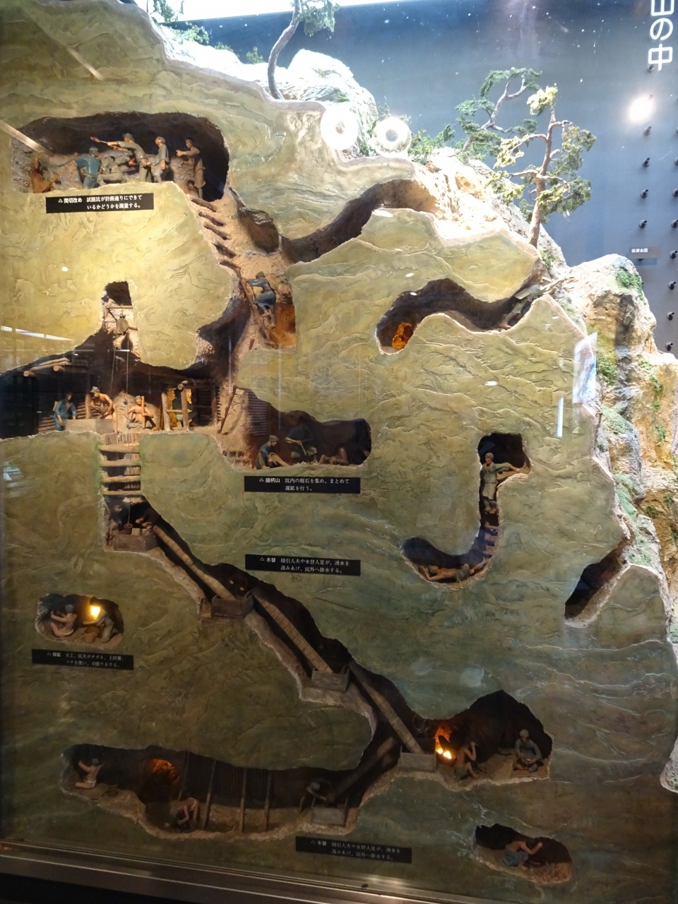 徳川時代に開山されて以来、過酷な環境の中で働き続けた工夫たちの採掘作業の様子が実にリアルに、特に動きのある人形たちに合わせて工夫たちの声も聞こえてくるので、一層 臨場感があります。