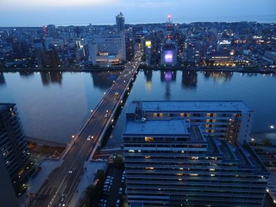 暮れ行く街に徐々に灯が灯され、特に眼下に見える萬代橋周辺、そして新潟西港周辺の景色は思わず足が止まります。