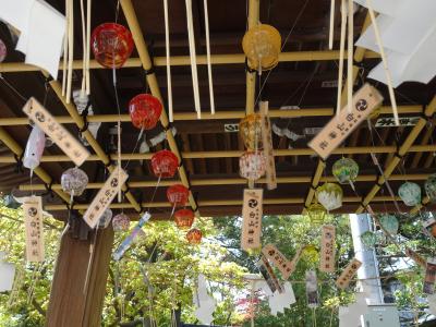 本堂に向かう前に手水舎を見てみると、屋根から吊り下げられた風鈴が涼し気な音色を出し、その下の水面に色とりどりの花々を浮かべています。