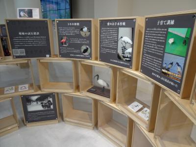 そして資料館の中では、トキの生態を写真やパネルなどで紹介し、その奥 さらに進むとガラス越しではありますが、ケージの中にいる数羽のトキを見ることができます。