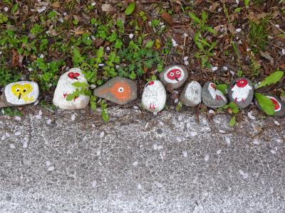 あと公園内の通路には、トキの絵を描いた小石が置かれています。