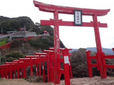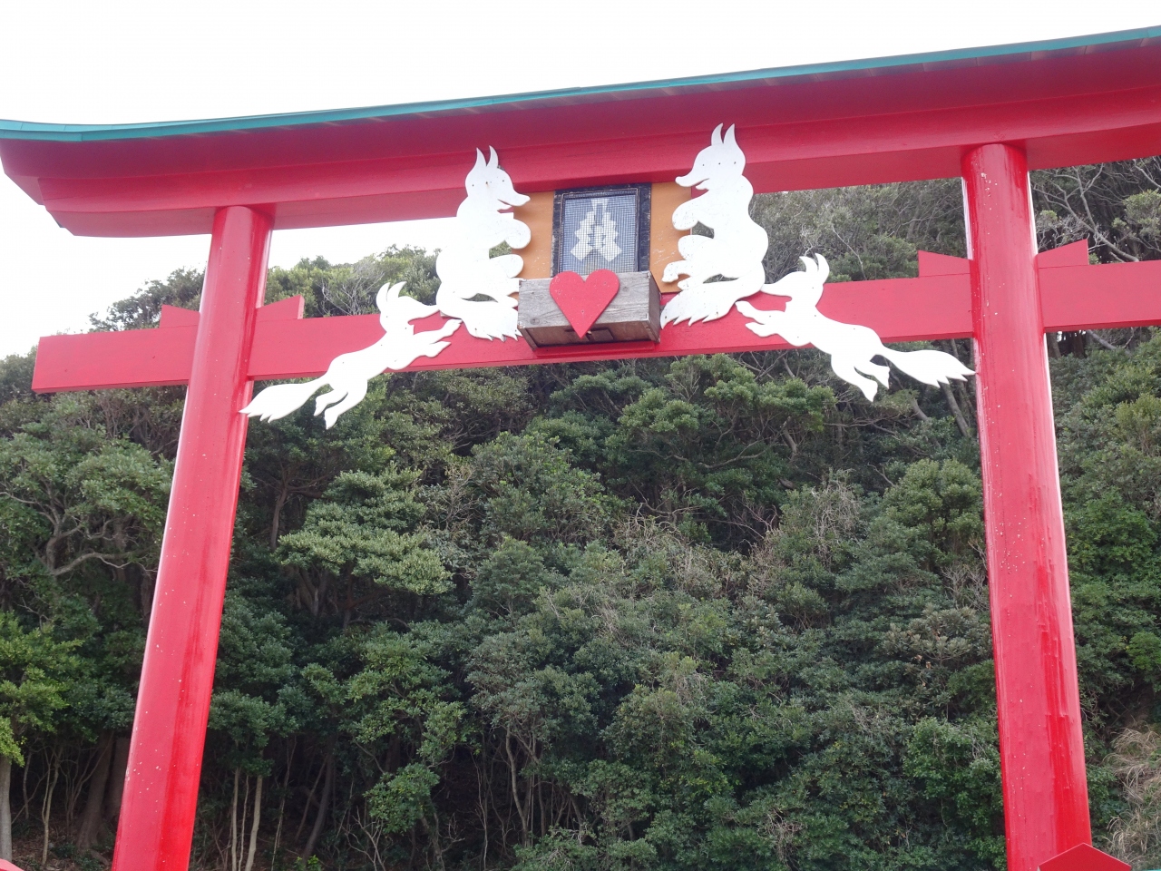 海岸線を望む丘に123基の赤い鳥居が立ち並ぶ、話題の映えスポットです。