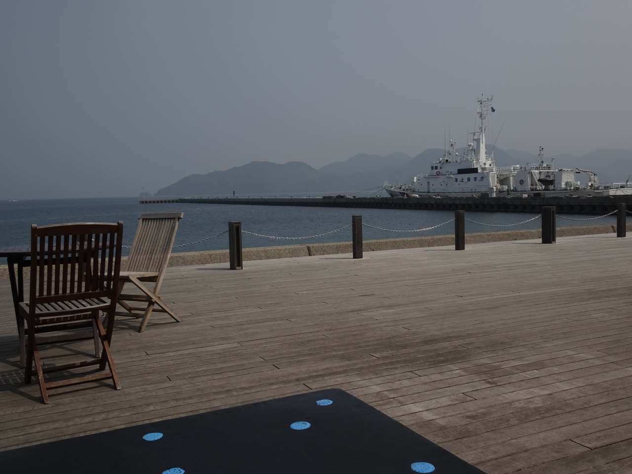 目の前には海上保安庁の船も停泊し、近くに青海島観光汽船の乗り場があるので、その観光船が行き交うのを見たり、のんびり過ごすことができました。- 旅行時期
