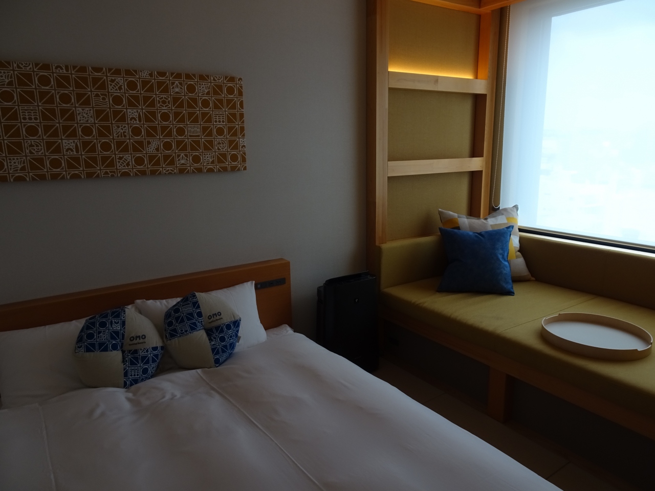 また窓一面に備え付けの大きなソファ、薄いロールカーテンから薄日が入ってくるのも GOOD!でした。