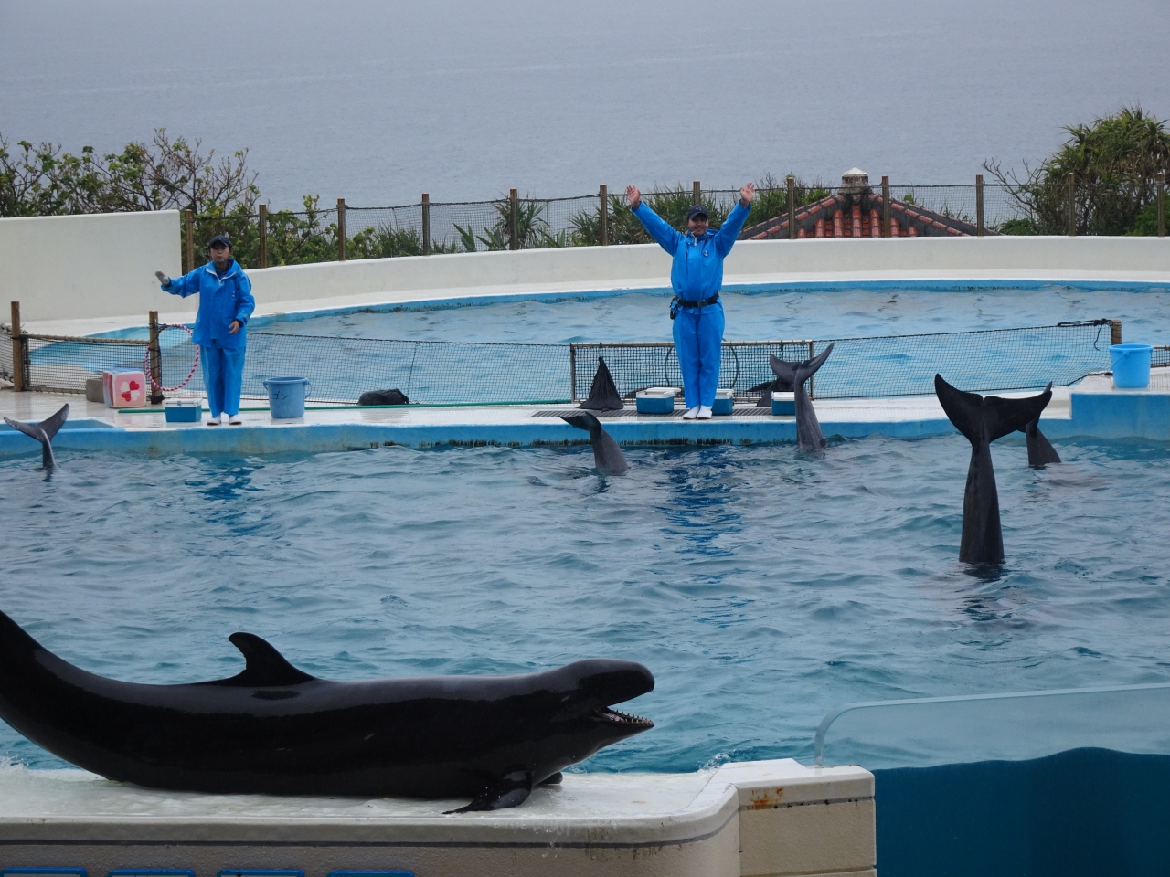 お年のせいかハードな演技ではありませんでしたが、他のイルカたちと共に約20分間、