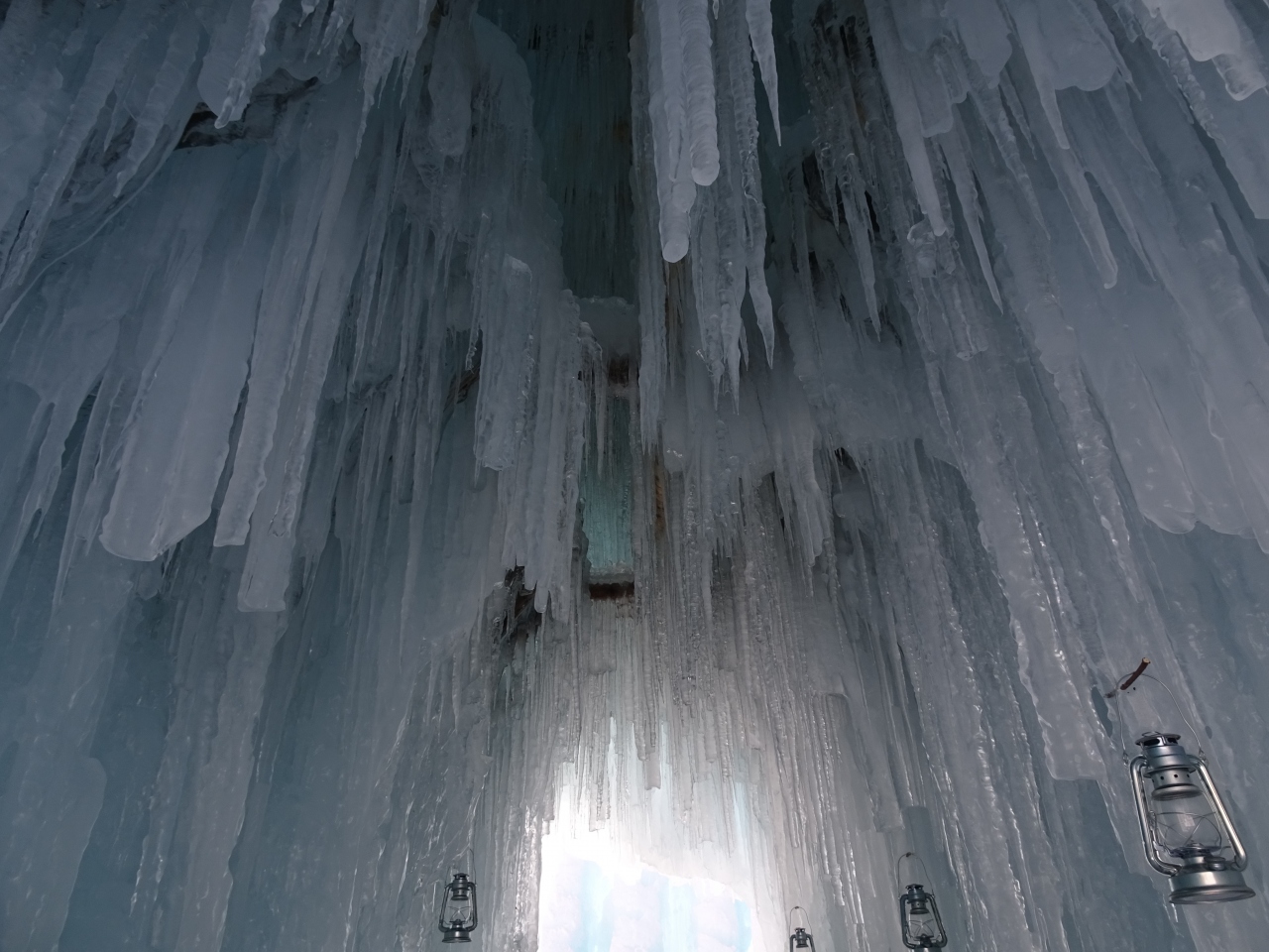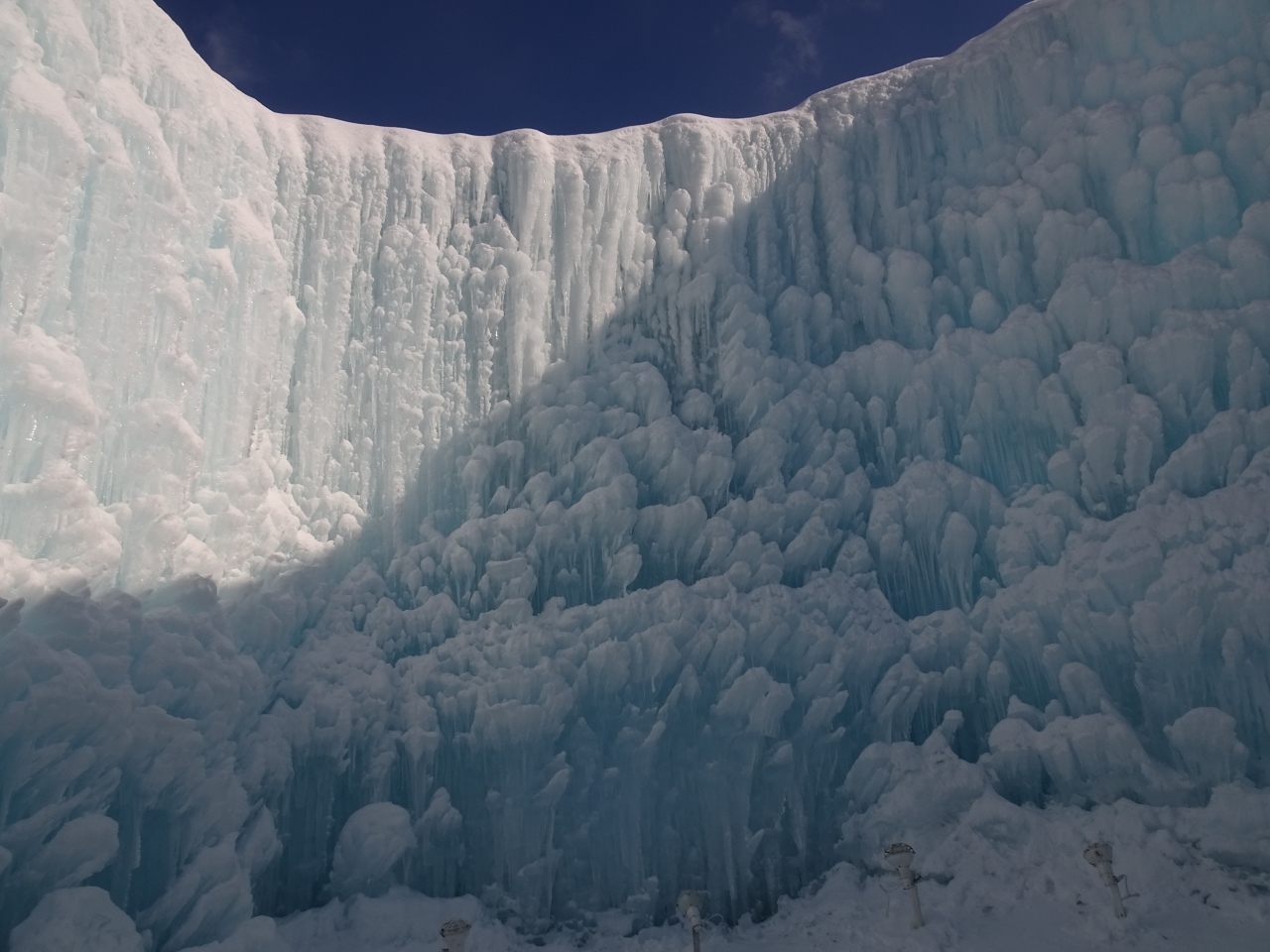 その後は順番に、かまくらのような雪蔵の中を見て回りましたが、それぞれ凍ってできた氷柱が芸術的で、外では太陽の光がまぶしくて異なる表情を見せてくれるので、面白かったです。