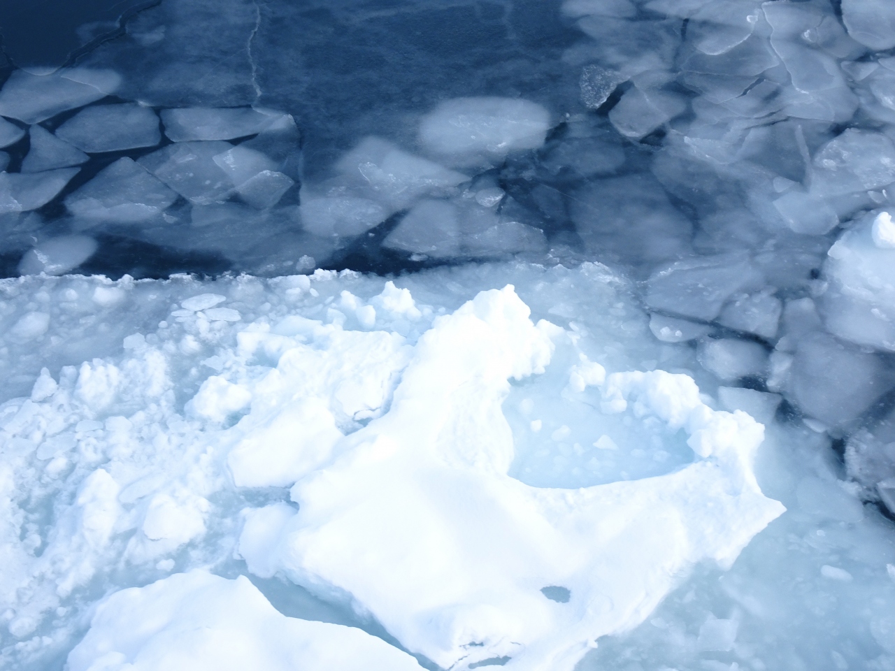 出航してから なかなか流氷が見えてこないので、半ばあきらめていましたが、沖合でやっと流氷を見ることができました。