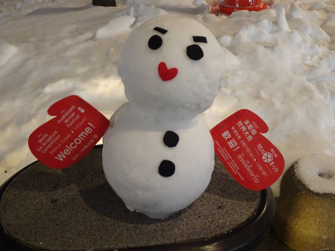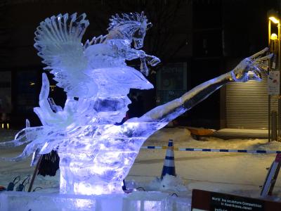 ただ駅から会場に続く道路には徒歩でも飽きない工夫で、雪だるまや氷の彫刻が目を楽しませてくれます。