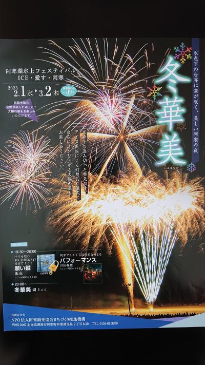ホテルが隣接する阿寒湖沿いの湖上で、2/1~3/2まで毎日花火が打ち上げられるイベントです。