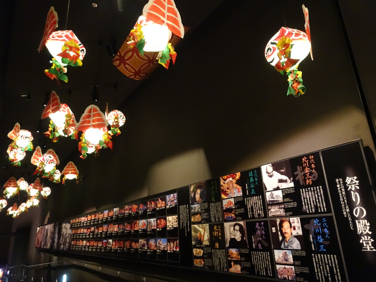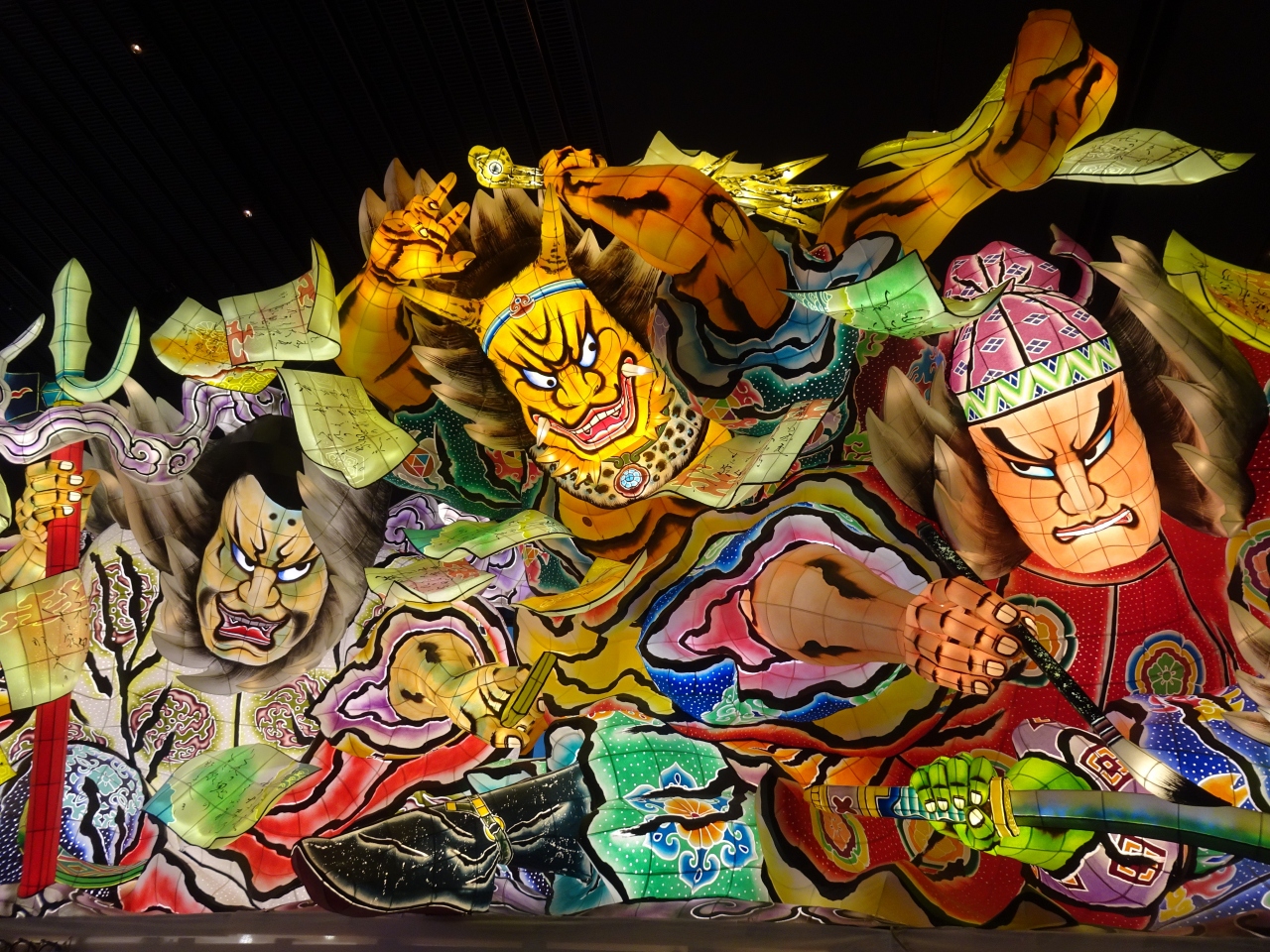 薄暗い通路を通っていくと、ねぶたの芸術的なパーツや その年の優秀賞となった巨大なねぶたが展示されています。