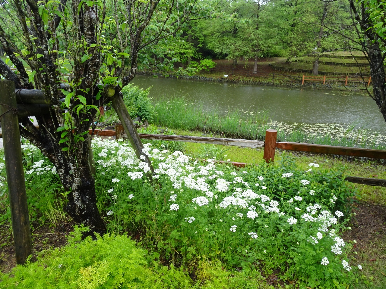 花の美術館バス駐車場から入場して左側に進むと、イングリッシュガーデンを思わせるような可愛らしい庭の通路に続きます。