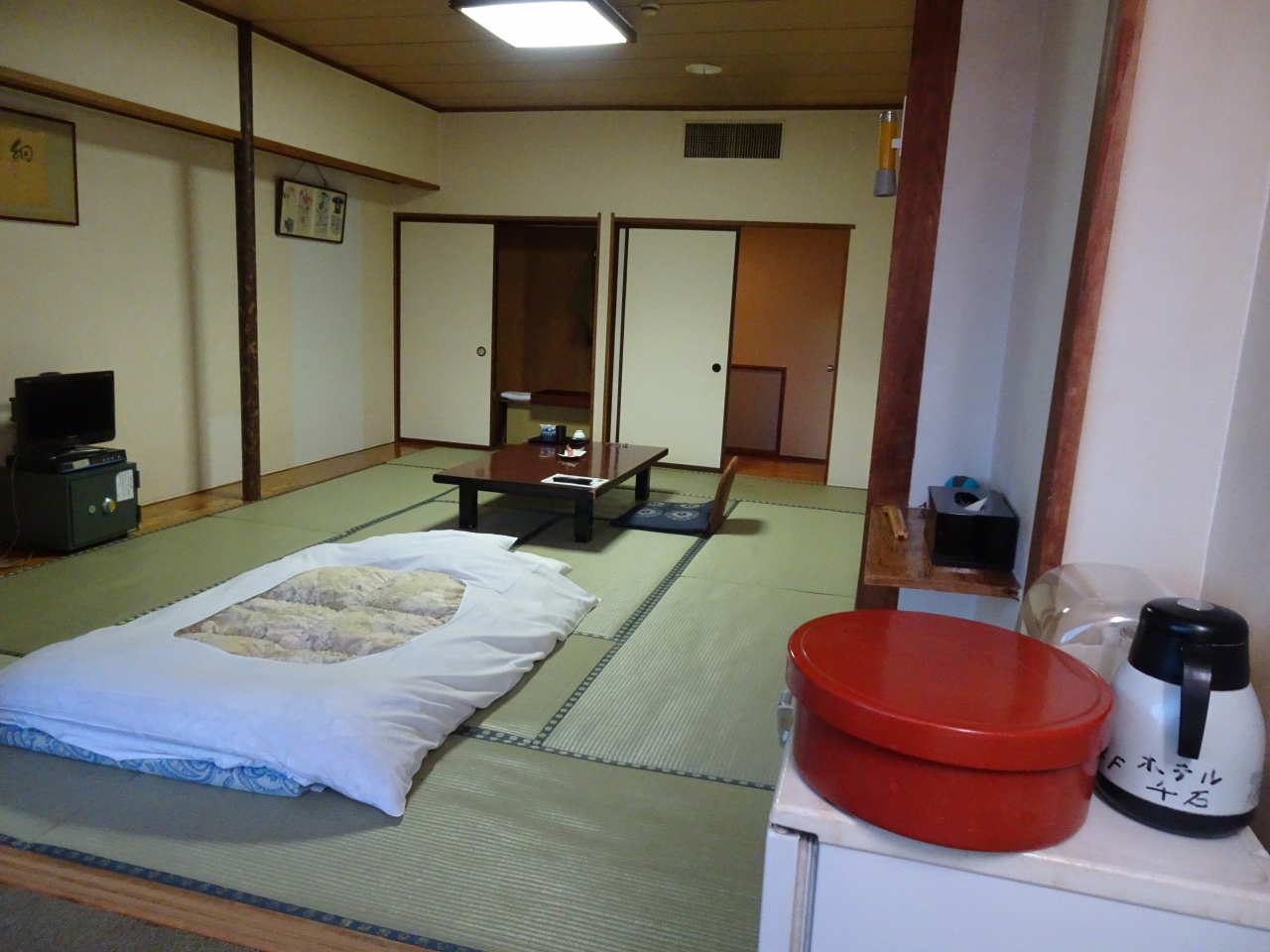 広めの大きな和室、でもその割に20インチくらいのとても小さなTVだったので、ビックリしました(笑)。