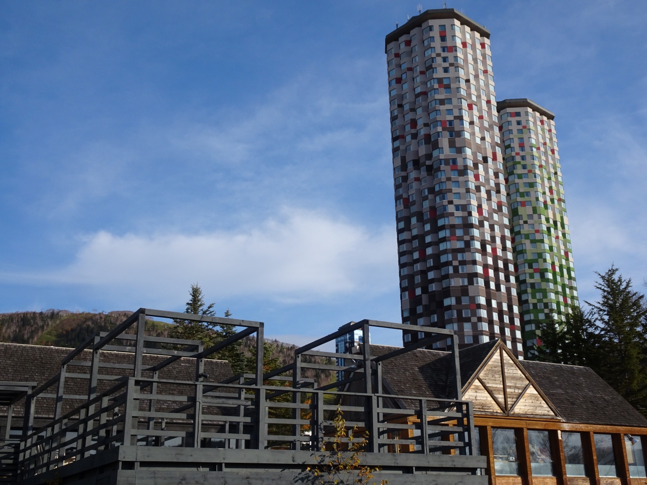 広大な平地に2棟のタワーがそびえたつのがホテル棟です。