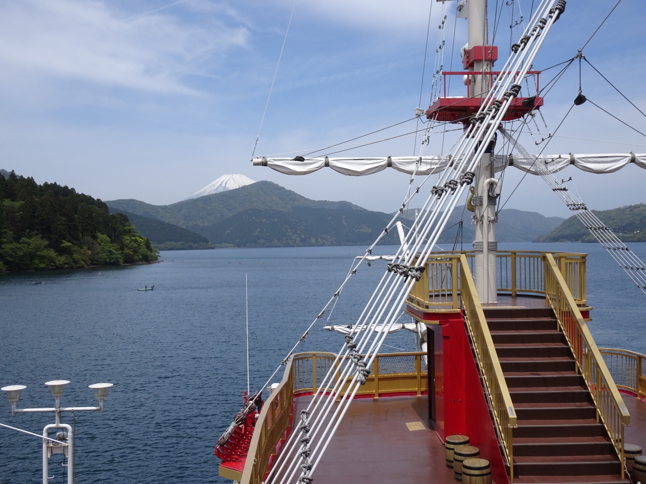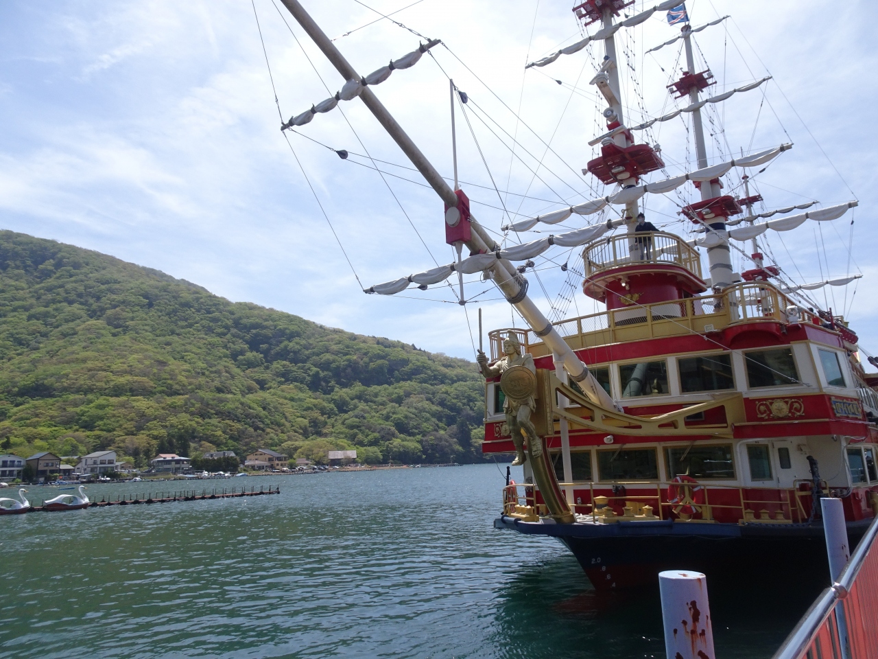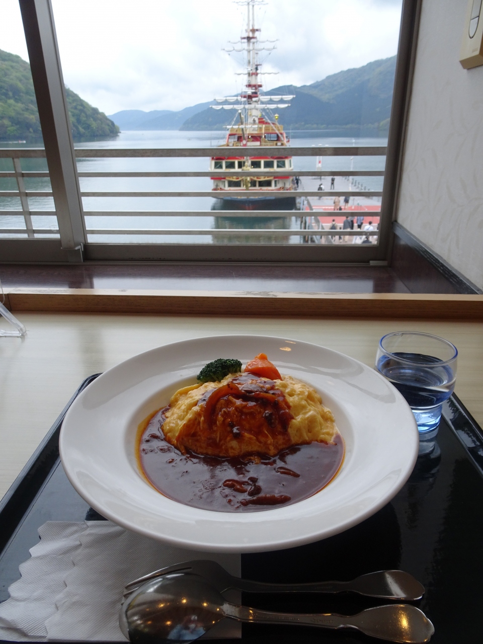 港側の窓側の席に座ると芦ノ湖が、そして海賊船を目の前に見ながら食事できるので、ロケーションは最高です。- 旅行時期