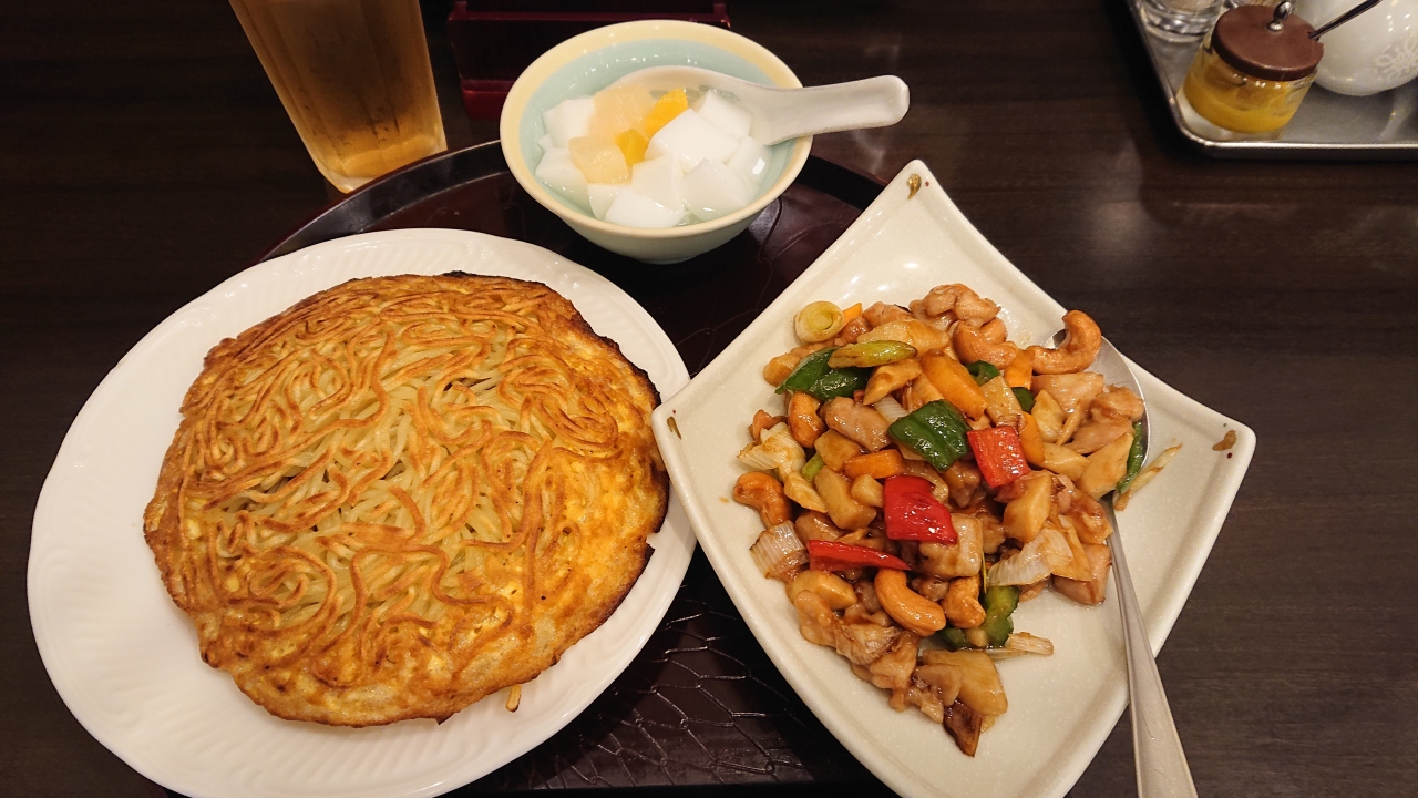 焼きそば(小)にカシューナッツと杏仁豆腐付きのセットです。
