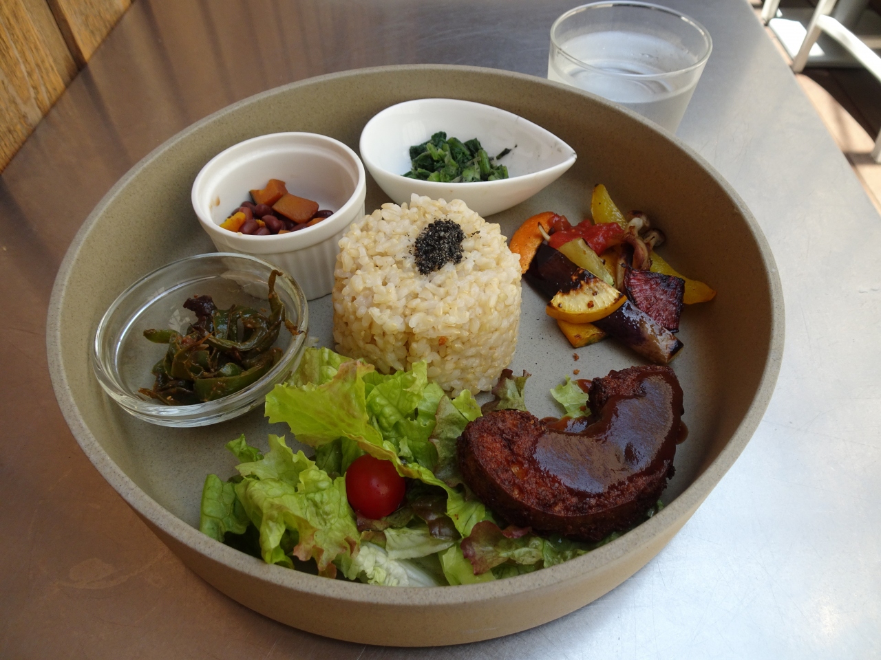 ランチメニューから、1日10食限定のセット「有機玄米と6品のお惣菜プレート 昆布と椎茸出汁の味噌汁付き」を選びました。