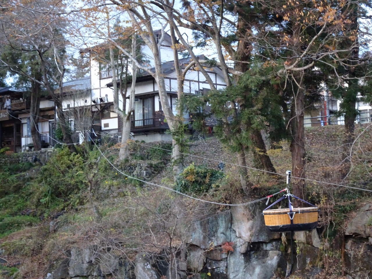 向こう岸の店からロープをつたって籠で運ばれた団子、超スピードで圧巻です(笑)。