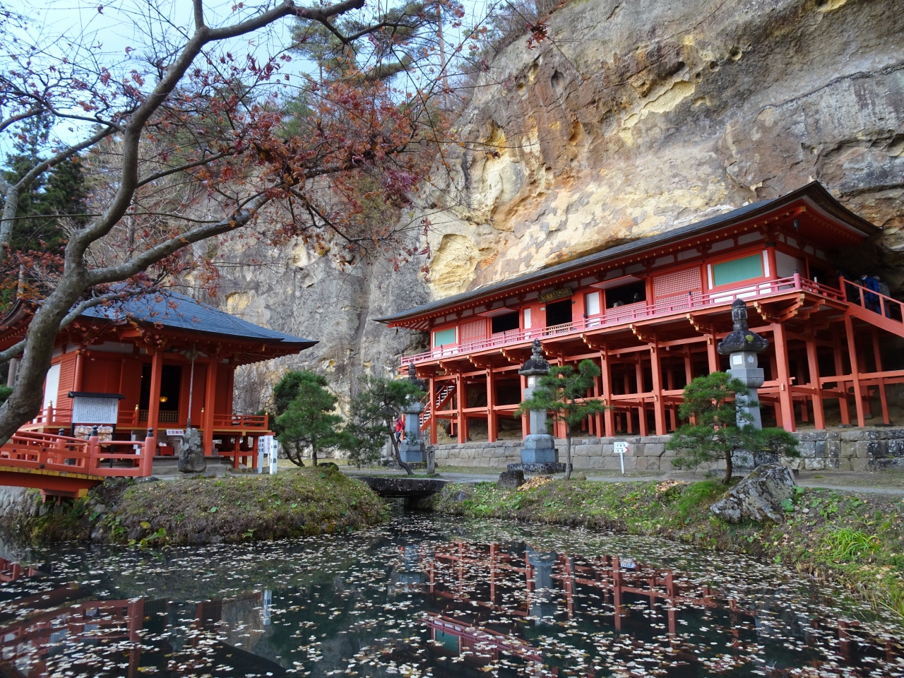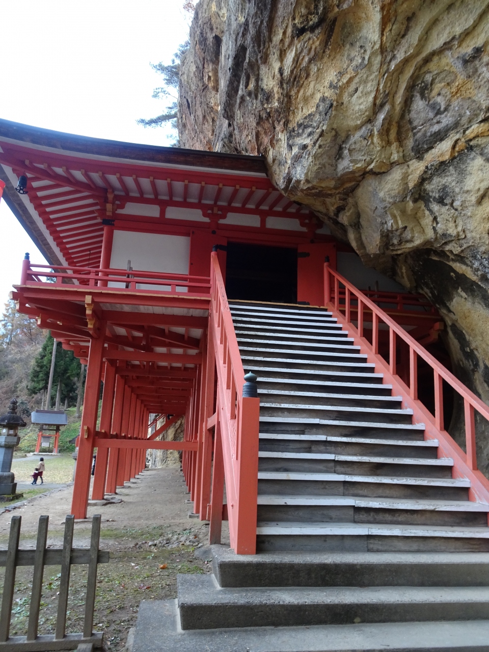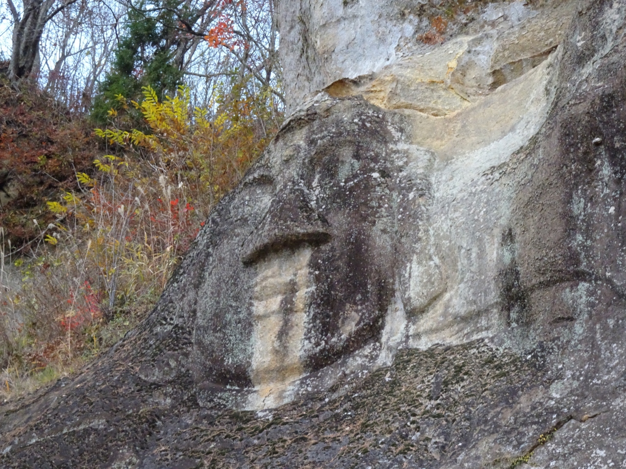 また反対側の外階段を降りれば、岩面大佛といって、その名の通り 岸壁に刻まれた仏様も見ることができます。