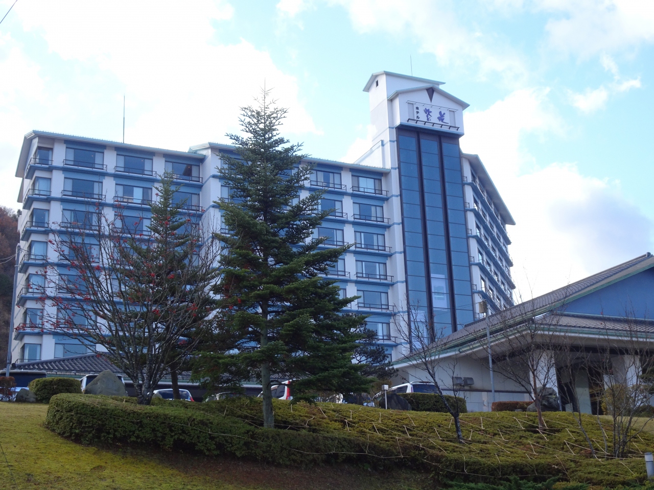 御所湖沿い、つなぎ温泉の大型ホテルです。
