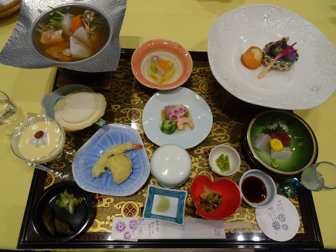夕食は懐石料理、朝食はバイキング方式、どちらもとっても美味しかったです。