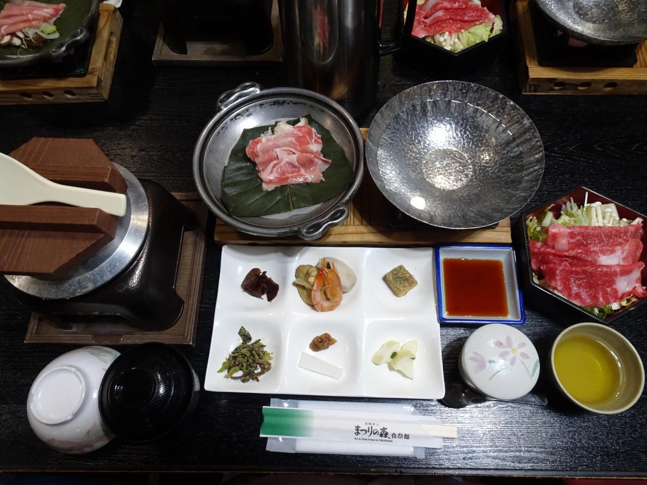 メニューは、飛騨牛しゃぶしゃぶと飛騨豚朴葉みそ焼き、釜炊き“龍の瞳”御飯、飛騨の名物揃いです。