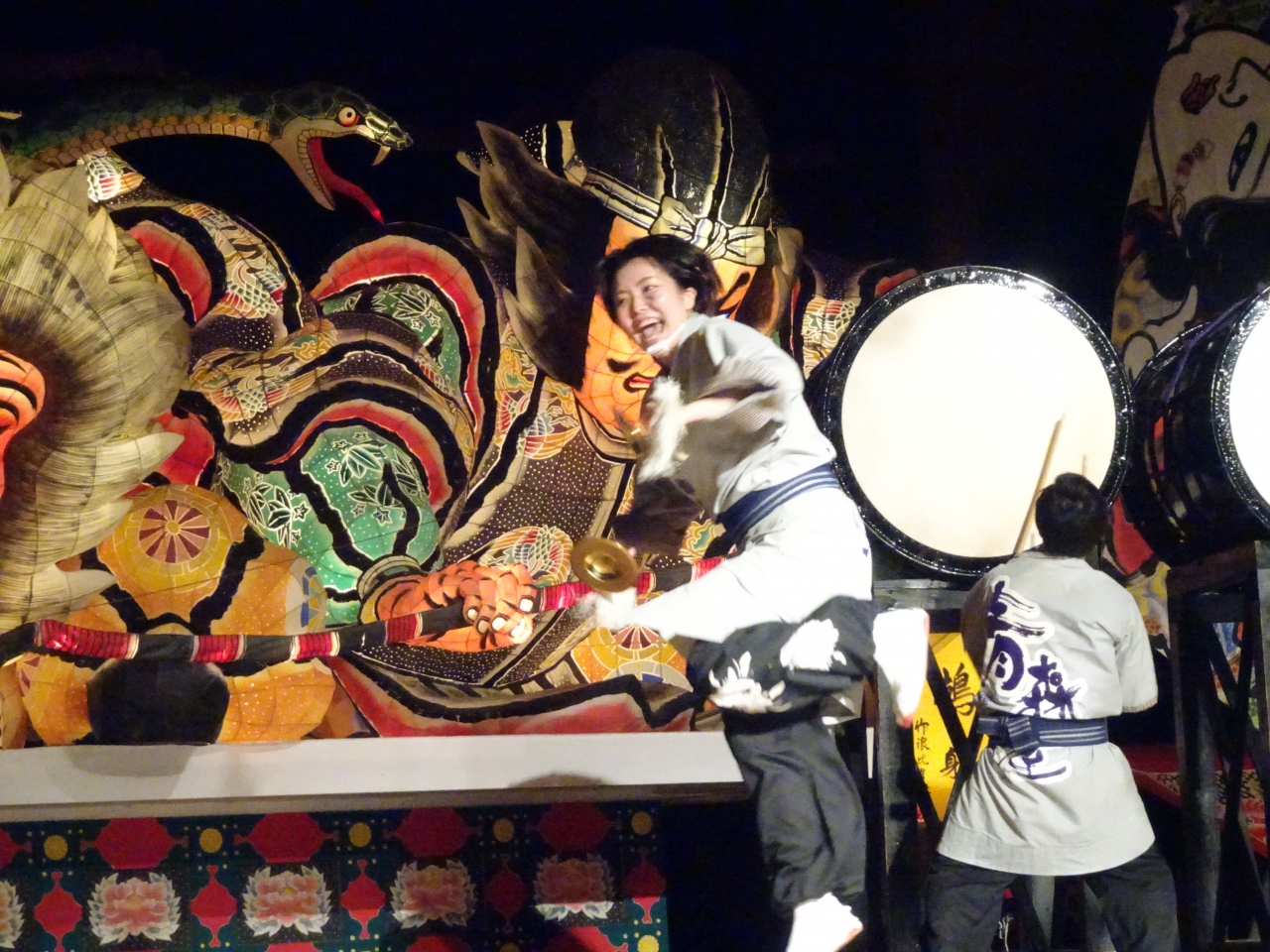 巨大で艶やかなねぶたをバックに、約40分間のショー。