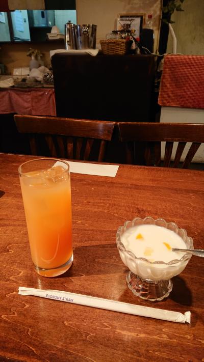 とても珍しい組み合わせだし、飲み水とは別に水を入れたコップにスプーンが突っ込まれた形でだされるのも、思わず笑ってしまいます。
