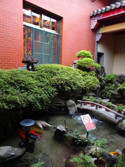 右側の入口から入っていくと本殿、そしてその裏側に続く通路には 小さな庭の池に鯉が飼われていました。
