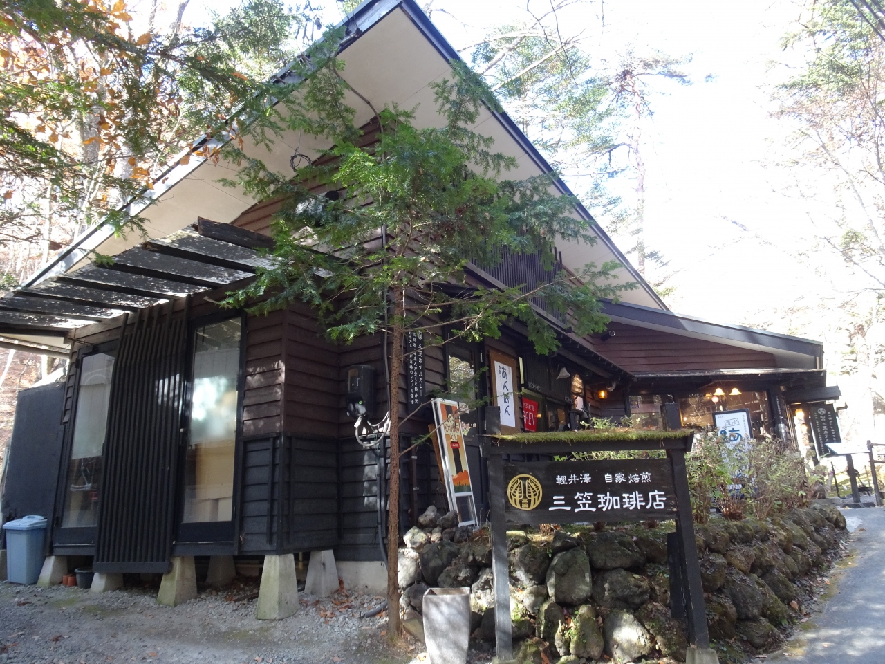 旧三笠ホテルから山の方向に少し歩けば、左手に山小屋風の喫茶店があります。