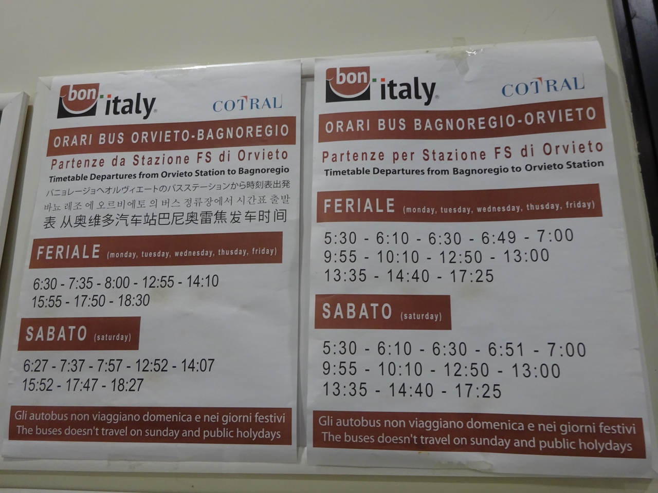 ローマから2時間に1本の列車、オルヴィエートからのバスも日に数本しかないので、滞在時間を考えると、なかなか効率よく計画が立てられません。