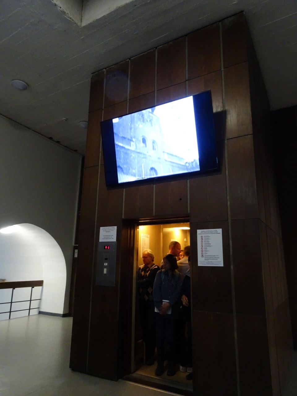 この教会の塔には螺旋階段ではなく、一気にエレベータで階上まで上がります。