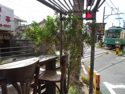 カウンターの窓越しに(外のテラス席もあり)目の前を通り過ぎる江ノ電を見ながら食事を楽しめるので、観光客にも大人気(外国人観光客も多し)。