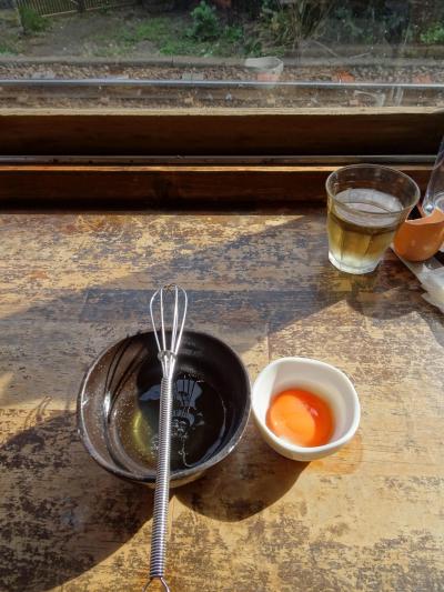 最初に、こだわり卵が出されますが、自分で卵を割って、白身を泡立てるのも大うけ。