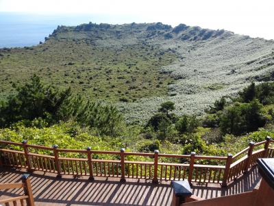 城山日出峰(ソンサンイルチュルボン)は、約10万年前の海底噴火によってできた巨大岩山で、済州島を代表する景勝地の1つ、ユネスコ世界自然遺産に登録されています。