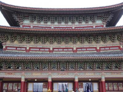 東洋最大規模を誇る法堂・大寂光殿(テジョックァンジョン)は高さ30m。