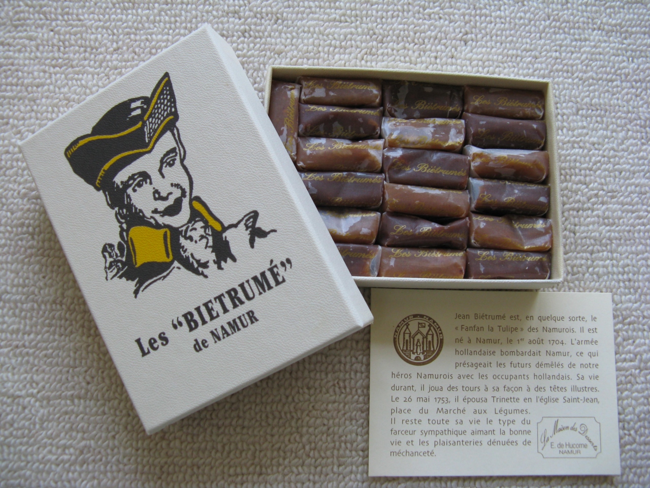 ナミュールの Fer 通りにある チョコレートショップ 「De Hucorne-Fronville」 の名物 “ビエトリュメ” です。