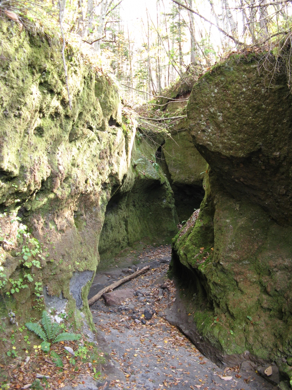 苔の洞門ネイチャーセンターから、鬱蒼とした砂地の山道を歩くこと約15分、崖に設置された急な階段を上りきったところから洞門の入口だけ、見ることができます。