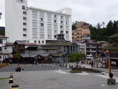 徒歩で湯畑まで行けますが、帰りは急な上り坂(当日は一部道路が工事中)なので、ホテルと湯畑前の大東館(同系列ホテル)を巡回するシャトルバスの利用がお勧めです。