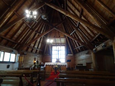 中に入ると、ロッジ風の木造屋根や そのデザイン性、とても温かみのある祈りの場所でした。- 旅行時期