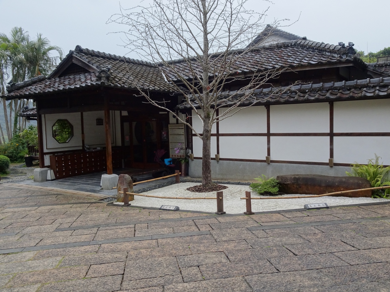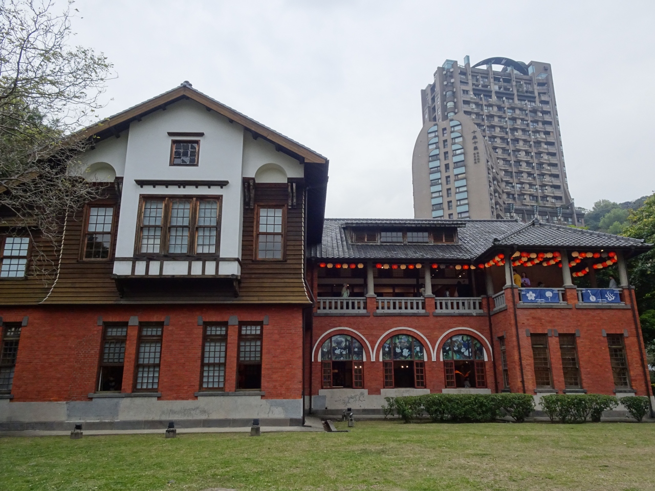 MRT新北投駅を出て中山路を真っすぐ進むと、芝生の中に1階が煉瓦造り、2階は木造という和洋折衷の大きな建物があります。