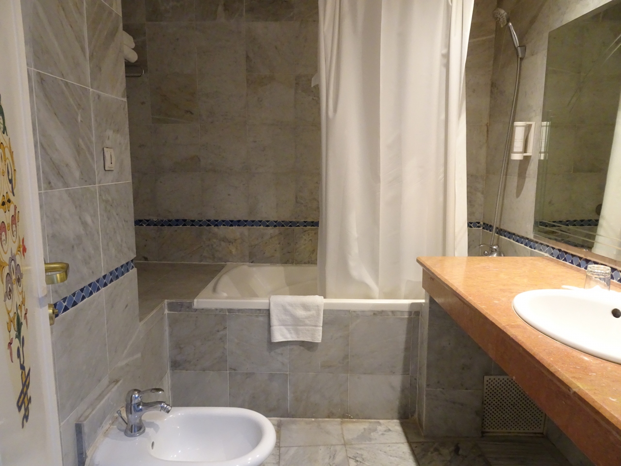 なおモロッコのホテルはどこも洗面台が高い位置なので、背伸びしながらの利用です。