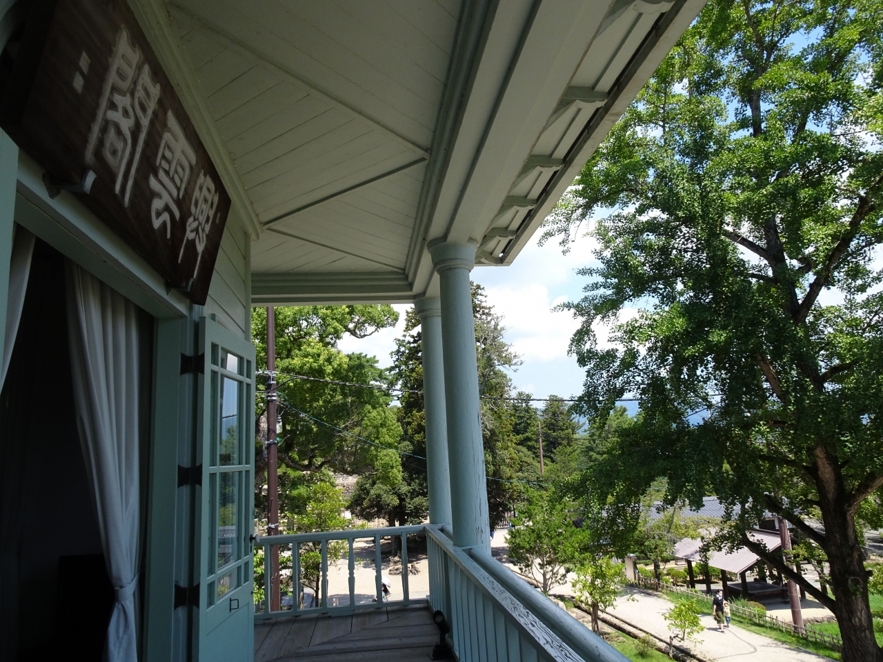 1階はカフェ、見学は自由で1階奥にはこの興雲閣にかかわる歴史を紹介した写真パネルが展示されています。