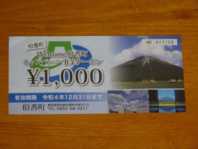 またチェックインした際、1000円分の伯耆町限定のクーポンをいただきました。