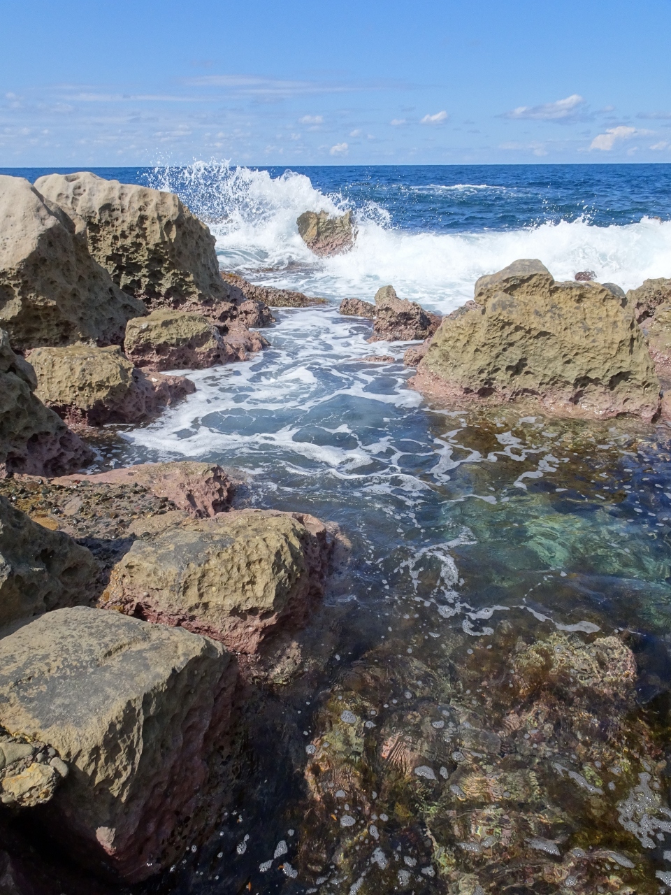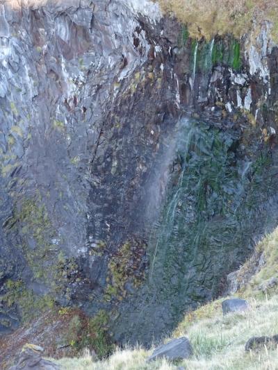 えっ、どこに? と思うぐらい、絶壁からチョロチョロと海に流れ落ちる滝なので、少し拍子抜けするかも。