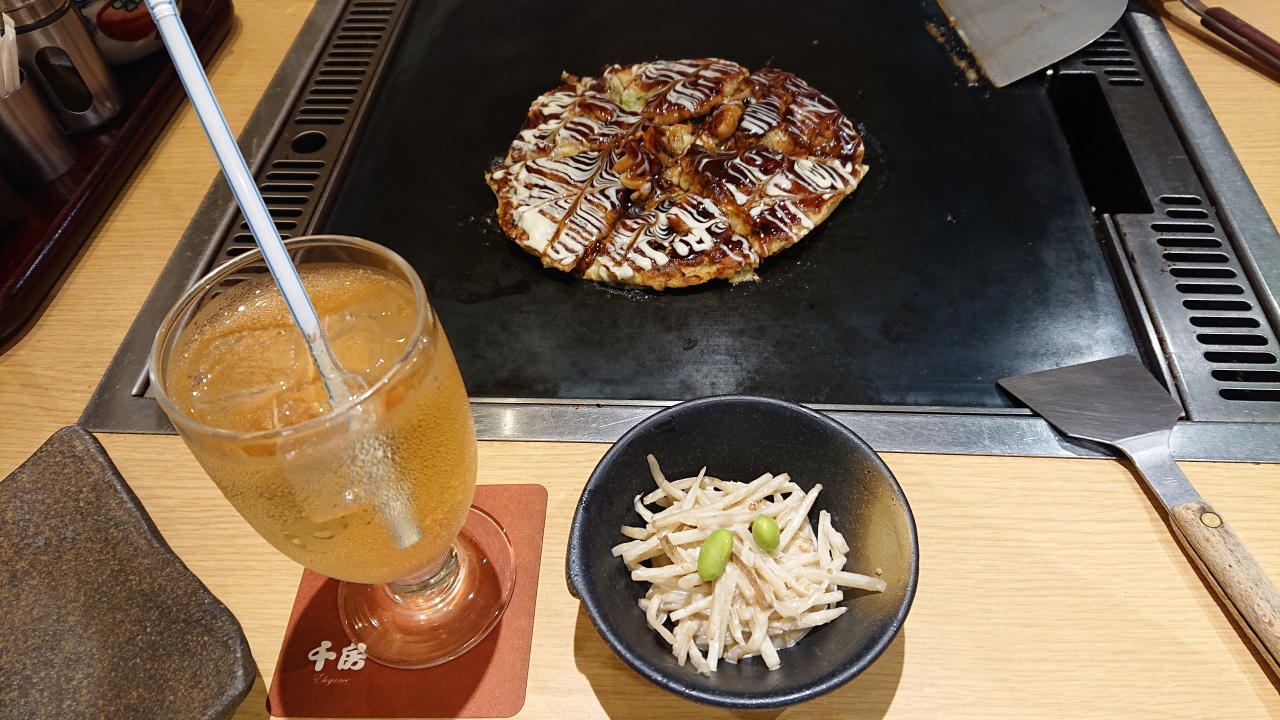 南海難波駅から戎橋商店街の路地に入ったビルの地下1階、大阪の人ならだれでも知っている千房のチェーン店です。